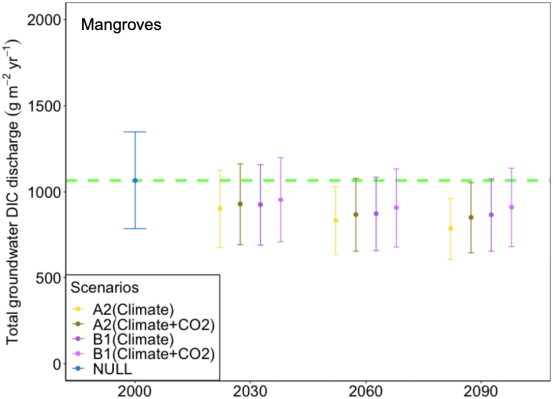 Full paper: Ouyang, X., Maher, D.T., Santos, I.R. (2024) Climate change decreases groundwater carbon discharges in global tidal wetlands. One Earth, doi: 10.1016/j.oneear.2024.07.009.