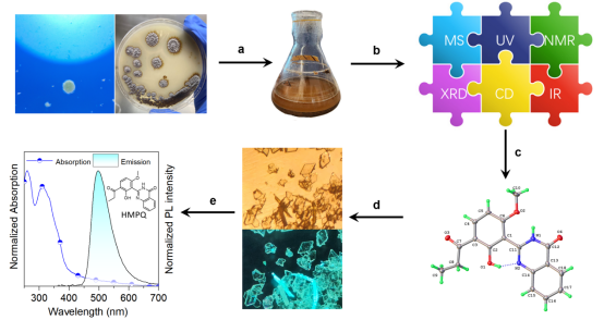**Figure 2. Discovery of the microbial-derived AIE small molecule HMPQ**