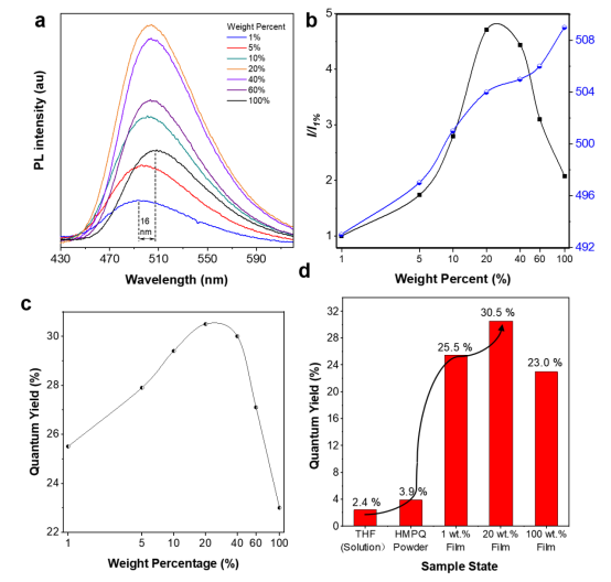 **Figure 4. Photophysical characterization of HMPQ in aggregated state**