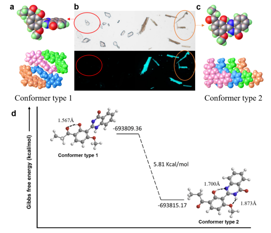 **Figure 5. The two crystalline polymorphs of HMPQ exhibit completely different luminescence properties**