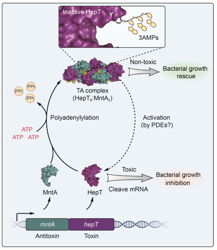 Researchers from WANG's group have previously shown that MntA antitoxin and HepT toxin form a stable heterooctamer, an organization that is very rare in other TA systems. However, in this study, they showed that polyadenylylation on HepT is the key to inactivate the toxicity.