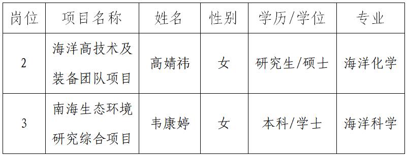 我室讨论并审定了助理研究员、工程技术人才及项目助理岗位的招聘面试结果,现对以下拟聘用人员予以公示: