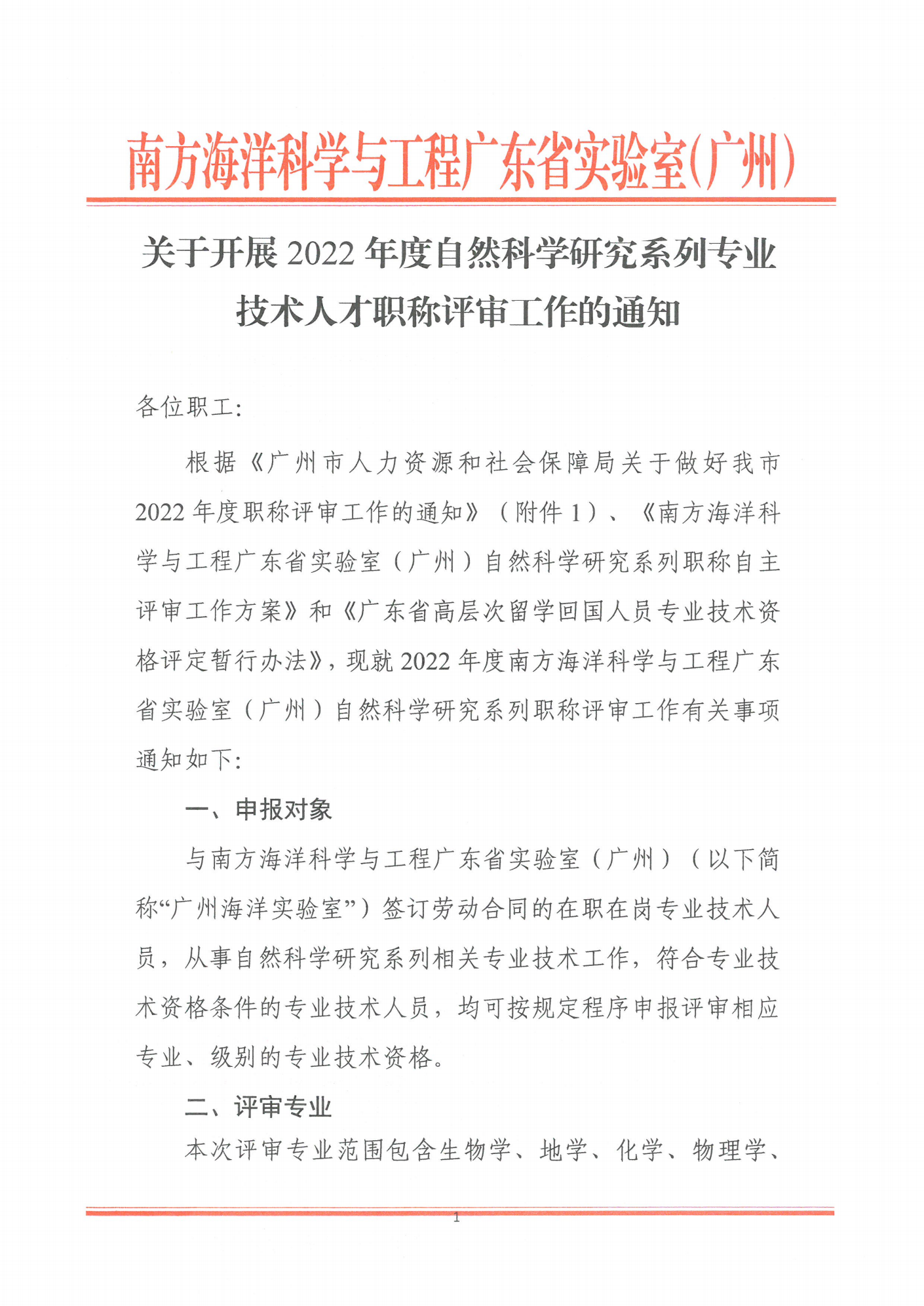 关于开展2022年度自然科学研究系列专业技术人才职称评审工作的通知