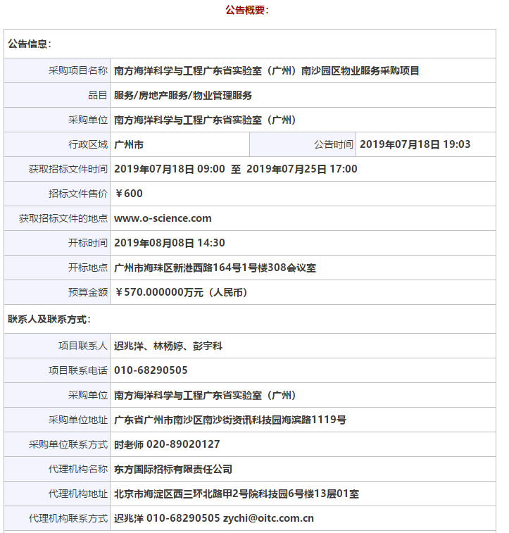 南方海洋科学与工程广东省实验室(广州)南沙园区物业服务采购项目公开招标公告