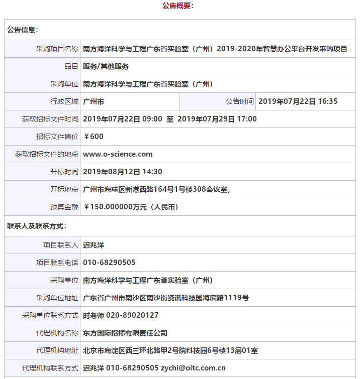 南方海洋科学与工程广东省实验室(广州)2019-2020年智慧办公平台开发采购项目公开招标公告