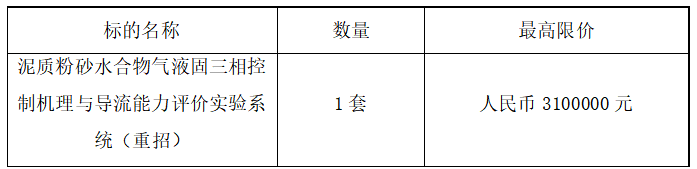 1.标的名称:泥质粉砂水合物气液固三相控制机理与导流能力评价实验系统(重招);