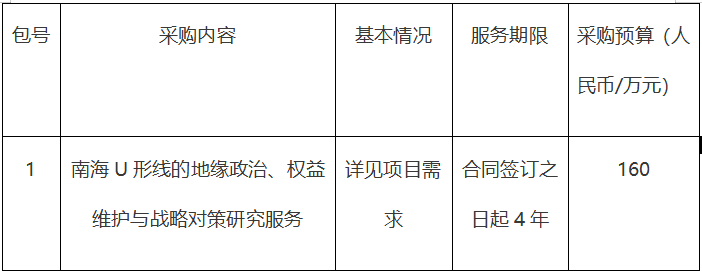 项目名称:南方海洋科学与工程广东省实验室(广州)南海U形线的地缘政治、权益维护与战略对策研究服务采购项目