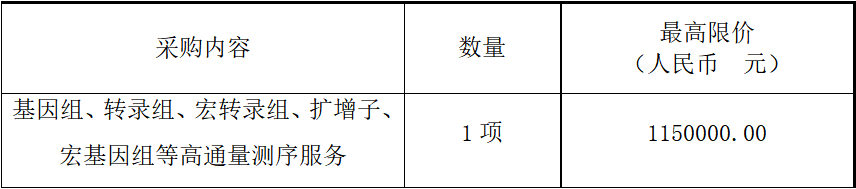 1.标的名称:基因组、转录组、宏转录组、扩增子、宏基因组等高通量测序服务