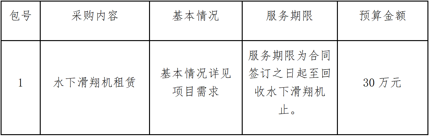 合同履行期限:服务期限为合同签订之日起至回收水下滑翔机止。
