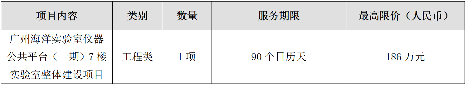1.项目名称:广州海洋实验室仪器公共平台(一期)7楼实验室整体建设项目