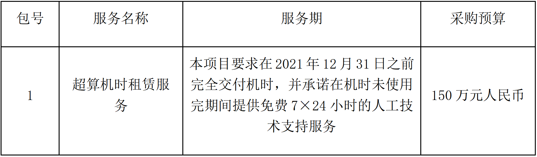 合同履行期限:本项目要求在2021年12月31日之前完全交付机时,并承诺在机时未使用完期间提供免费7×24小时的人工技术支持服务