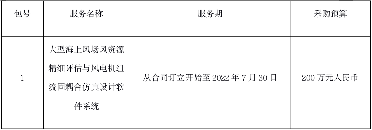 项目名称:南方海洋科学与工程广东省实验室(广州)大型海上风场风资源精细评估与风电机组流固耦合仿真设计软件系统采购项目