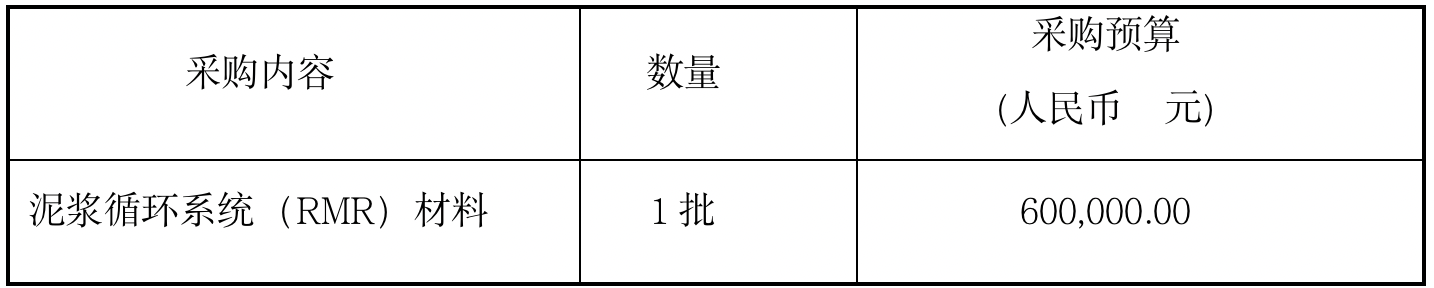 项目名称:“新型无隔水管闭路循环钻井技术研究”泥浆循环系统(RMR)材料采购