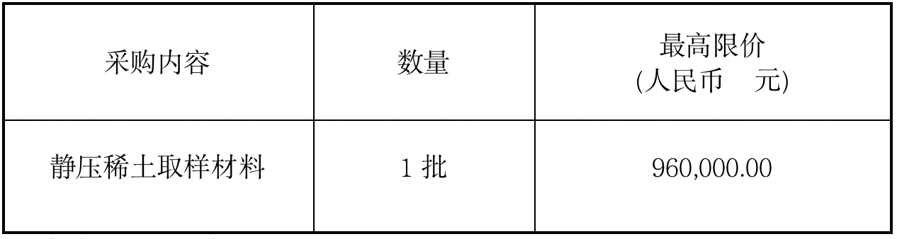 3.简要技术要求:本次采购的材料用于海上稀土及富钴结核调查作业所需。具体详见采购需求。