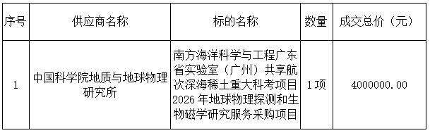 二、项目名称:南方海洋科学与工程广东省实验室(广州)共享航次深海稀土重大科考项目2026年地球物理探测和生物磁学研究服务采购项目