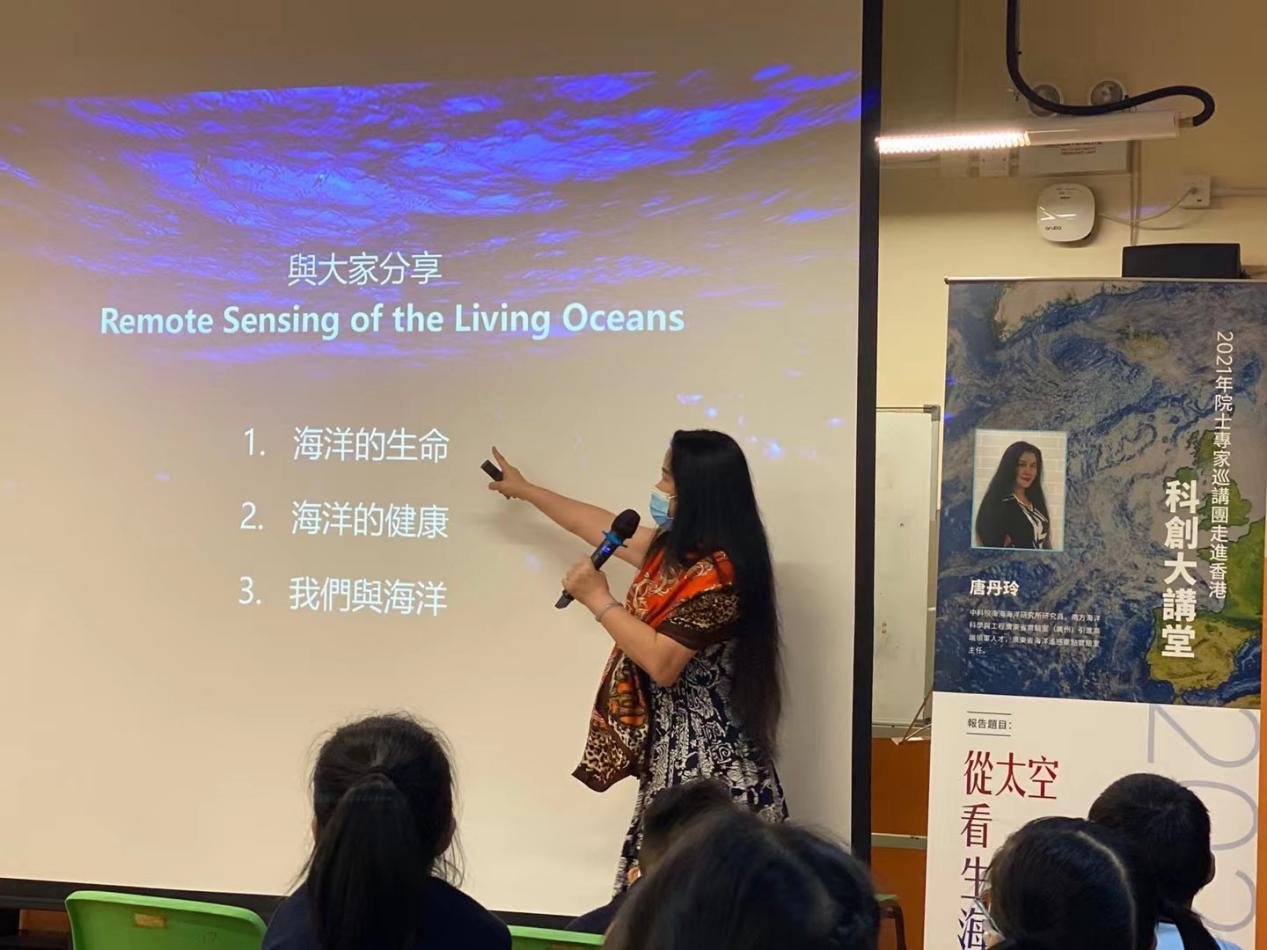 唐丹玲教授深入浅出地向香港师生讲述了“从太空遥感看海洋”这一话题,活动现场同学们积极互动,获益匪浅。参加活动的领导表示,通过这场科普盛宴,加深了香港师生对“海洋遥感”和祖国海洋科技发展的了解,激发了他们对海洋的热情和研究兴趣,期待与专家们更多地合作交流。