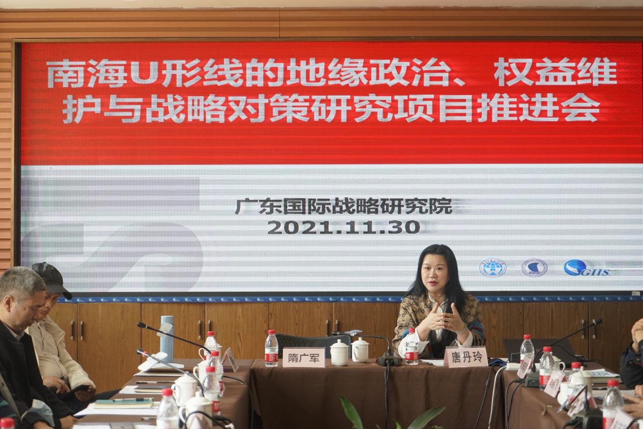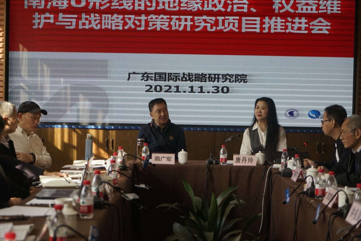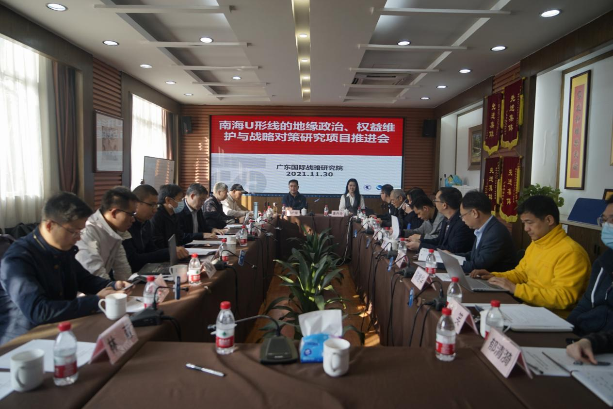 2021年11月30日上午,广东省创新团队“南海生态环境权益综合研究”项目课题(南海U形线的地缘政治、权益维护与战略对策研究)进展推进会在广东外语外贸大学广东国际战略研究院召开。该课题由广东外语外贸大学承担,课题负责人由广外大学党委书记隋广军教授担任。团队负责人、课题负责人及团队成员等20余人参加了本次会议。