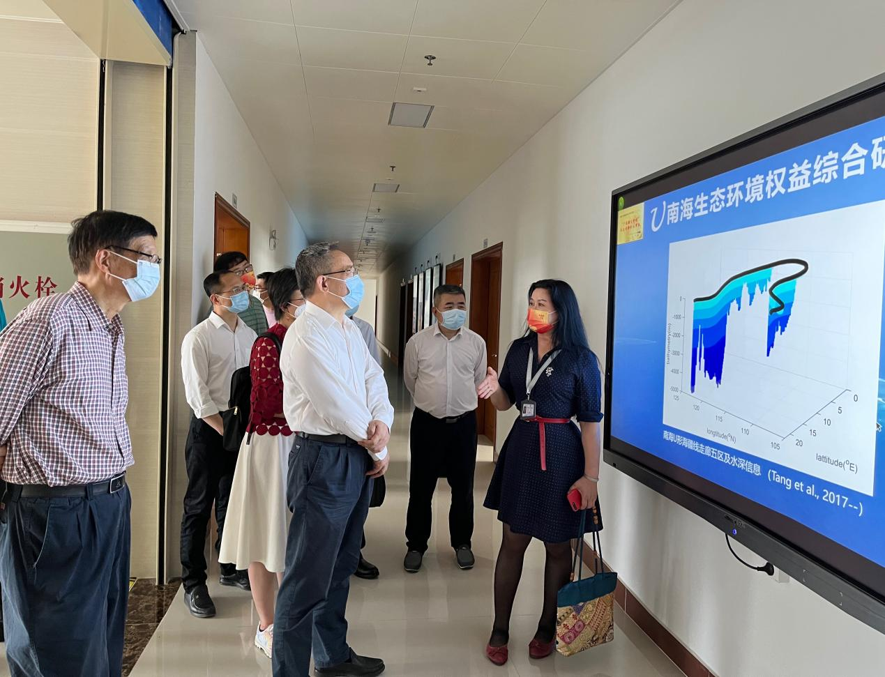 鲁修禄厅长一行先后参观了广州海洋实验室展厅、“南海生态环境权益遥感综合研究U团队”研究室和粤港澳大湾区生态环境遥感巡查研究平台,观看了相关研究成果应用演示并听取研究工作报告。