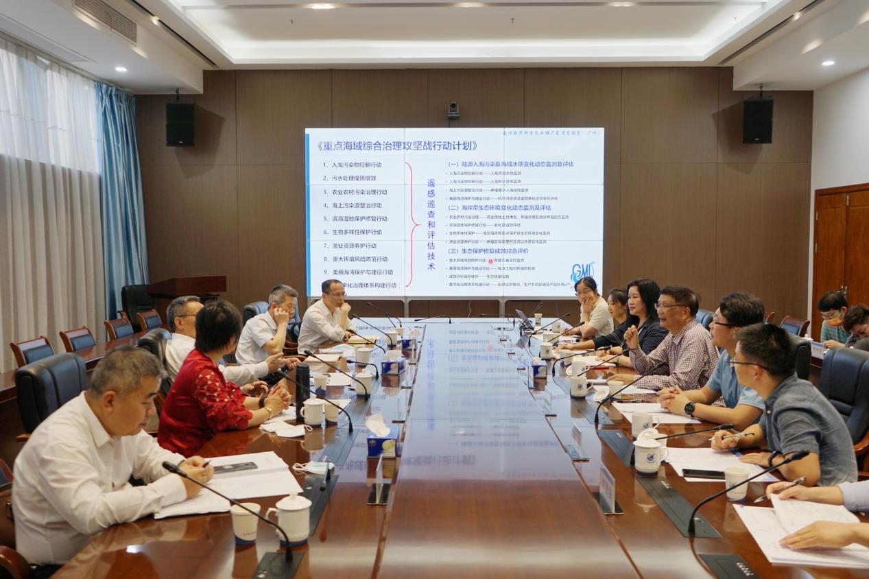 广东省生态环境厅海洋处处长黄创良、监测处处长林文、监测中心主任黄国锋和环科院院长汪永红,“南海生态环境权益遥感综合研究U团队”和“粤港澳大湾区生态环境与资源遥感团队”主要成员,以及相关职能部门负责人参加调研。