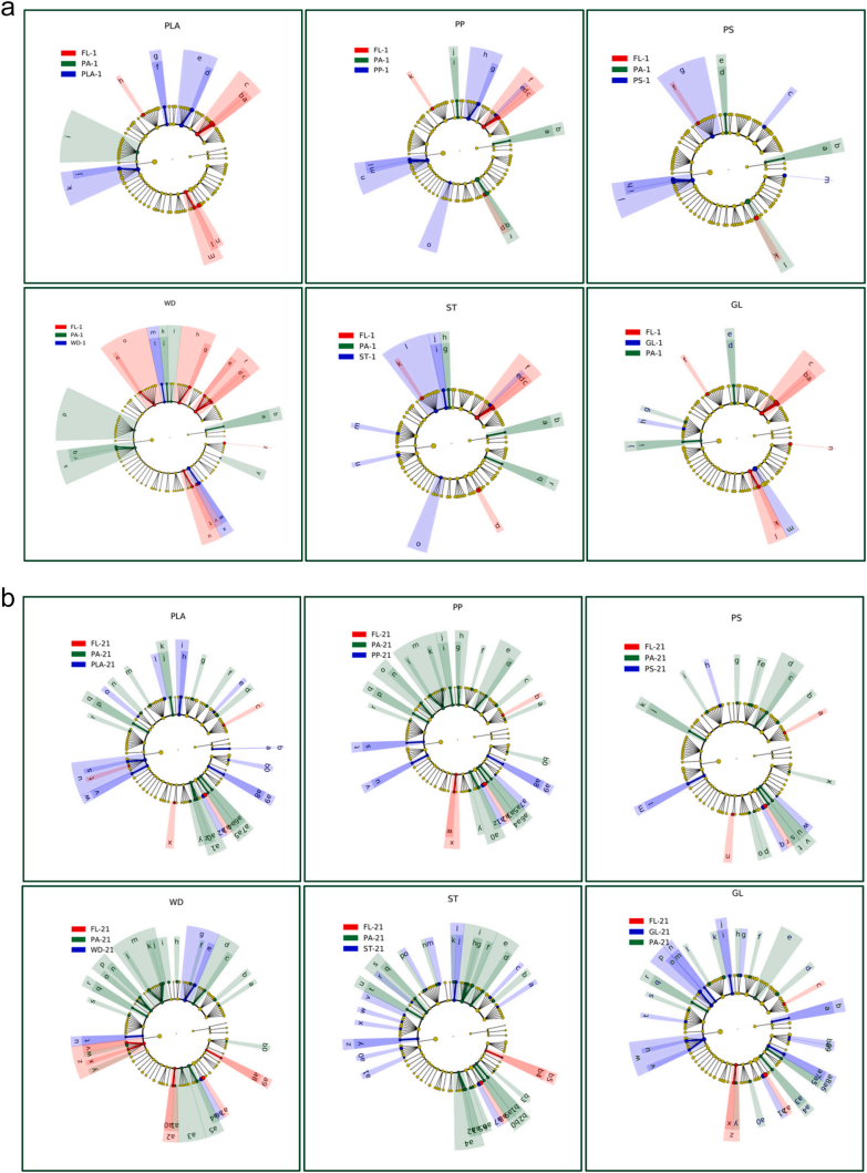 Fig. 3 Biomarkers of prokaryotic communities on different particle surfaces at different time in the environment of Pearl River Estuary.