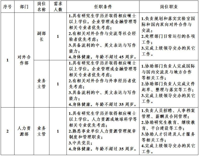 基于实验室建设与发展需要,现面向社会公开招聘以下岗位,详细说明如下: