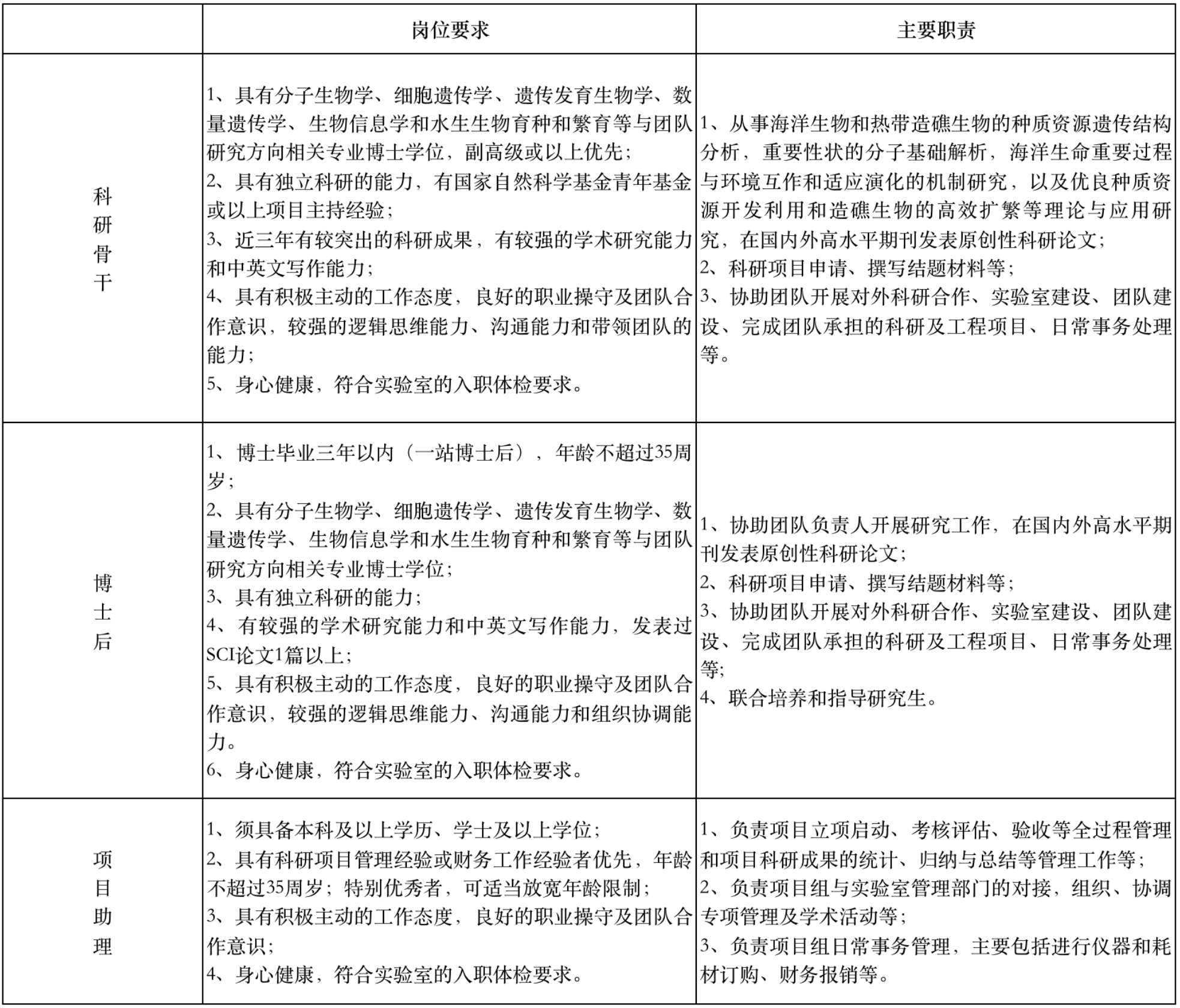 海洋遗传发育生物学与种质资源开发研究方向由著名海洋生物遗传育种学专家包振民院士牵头组建,该方向重点开展热带海洋生物的种质资源的评价和开发,重要生命现象和过程的分子机制解析,造礁生物遗传发育和进化生物学的多组学分析以及海洋生物优质种质创新和产业应用。基于实验室建设与发展需要,现面向社会公开招聘科研骨干、博士后和项目助理岗位,详细说明如下: