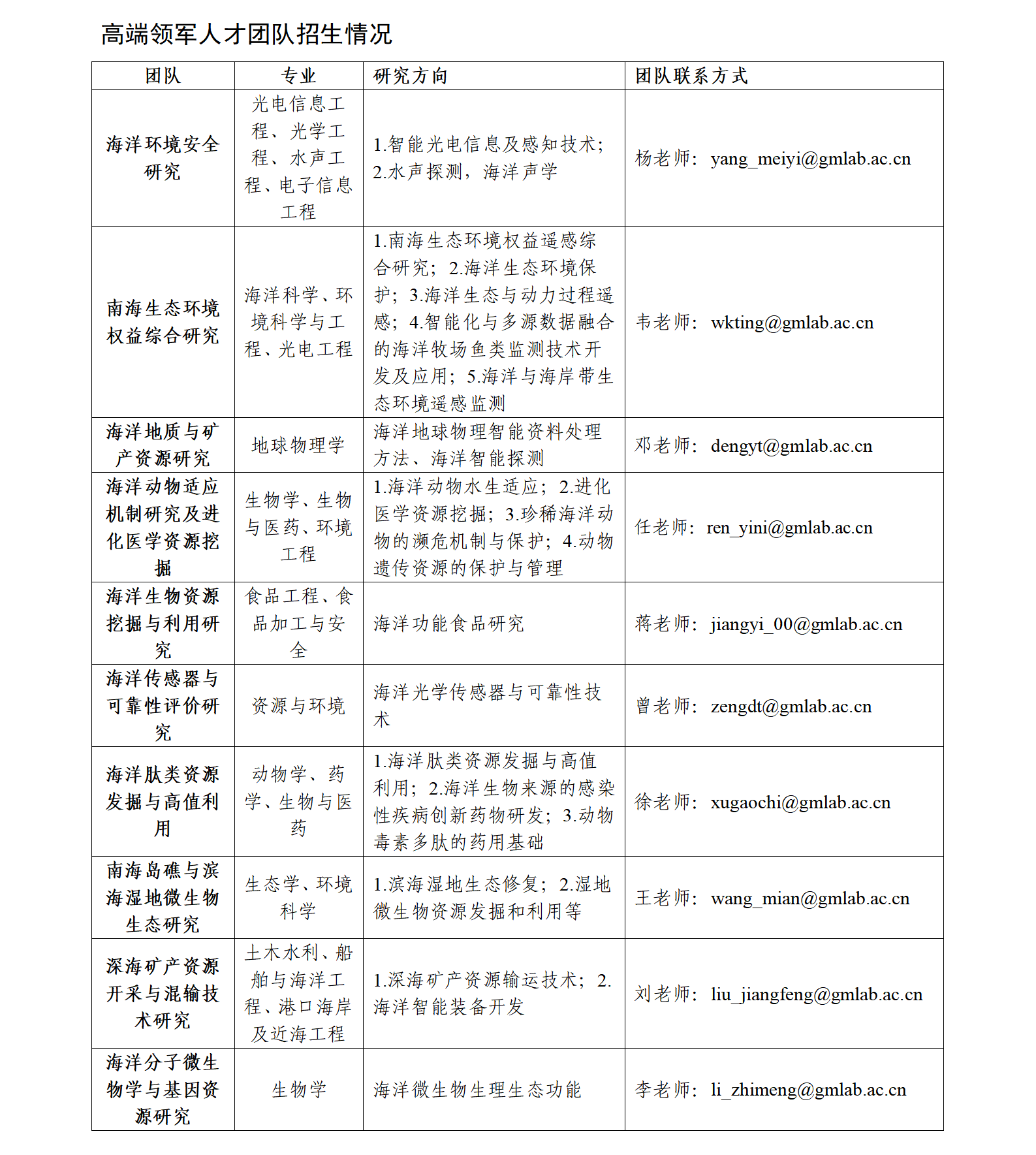 有意向者可通过邮件与团队联系。邮件主题请注明“学校+姓名+申请广州海洋实验室联合培养硕士研究生”,并同步抄送实验室人力资源部邮箱(zhuqing@gmlab.ac.cn)。同时,请关注联培高校官网,了解详细的报名、复试以及录取流程。