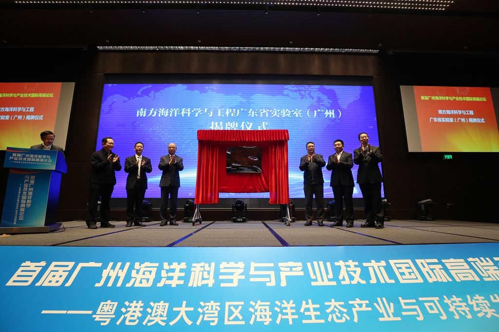 论坛开幕式后举行南方海洋科学与工程广东省实验室(广州)揭牌仪式。中科院相里斌副院长、省科技厅郑海涛副厅长、广州市王东副市长、广州南沙开发区管委会谢明副主任、中国科学院南海生态环境工程创新研究院张偲院长和广州海洋地质调查局叶建良局长出席揭牌仪式。