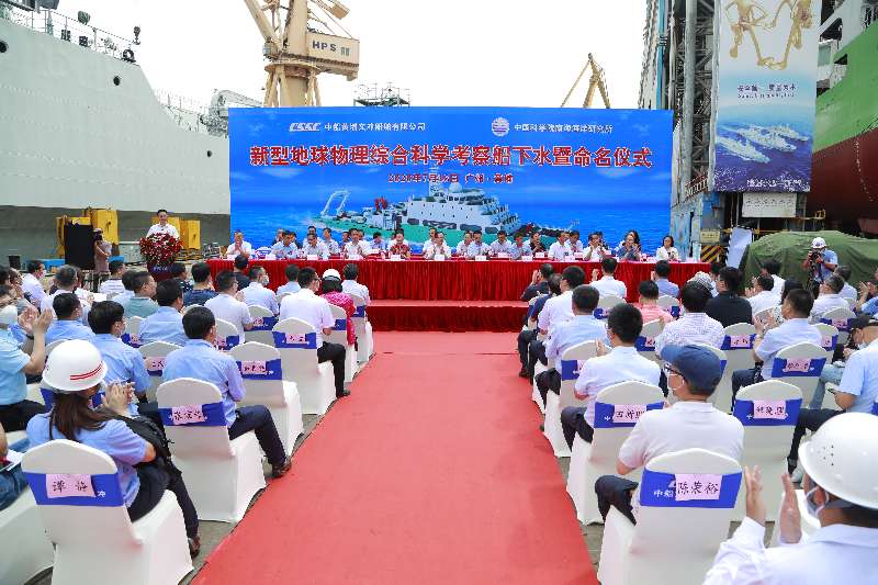 新型地球物理综合科学考察船下水暨命名仪式现场