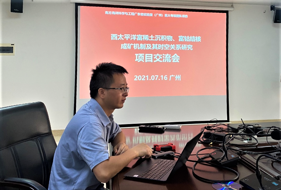 近日,南方海洋科学与工程广东省实验室(广州)首批人才团队引进重大专项“西太平洋富稀土沉积物、富钴结核成矿机制及其时空关系研究(GML2019ZD0106)”项目组在广州召开交流会。项目负责人何高文委托杨永高级工程师主持会议,任江波高级工程师、王汾连博士和邓贤泽博士等项目组成员做学术报告,就阶段项目研究成果及下一步工作计划进行了交流讨论。