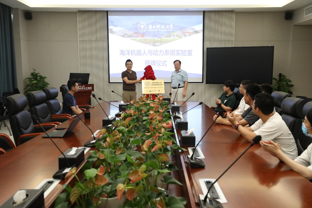 10月11日,南方海洋科学与工程广东省实验室(广州)深圳分部(简称深圳分部)海洋机器人与动力系统特色实验室(Marine Robot & Power System Lab)揭牌仪式暨2021海洋机器人学术论坛在南方科技大学工学院隆重举行。深圳分部主任、南科大海洋系系主任陈永顺讲席教授,海洋机器人与动力系统实验室副主任、南科大机械系王峥教授以及实验室的科研助理和同学们出席了会议,在线上出席会议的有海洋机器人与动力系统实验室主任、北京大学工学院谢广明教授,鹏城实验室工程师唐聚学,中科院自动化研究所(北京)工程师钟君等会议由深圳分部博士研究生万元芳主持。