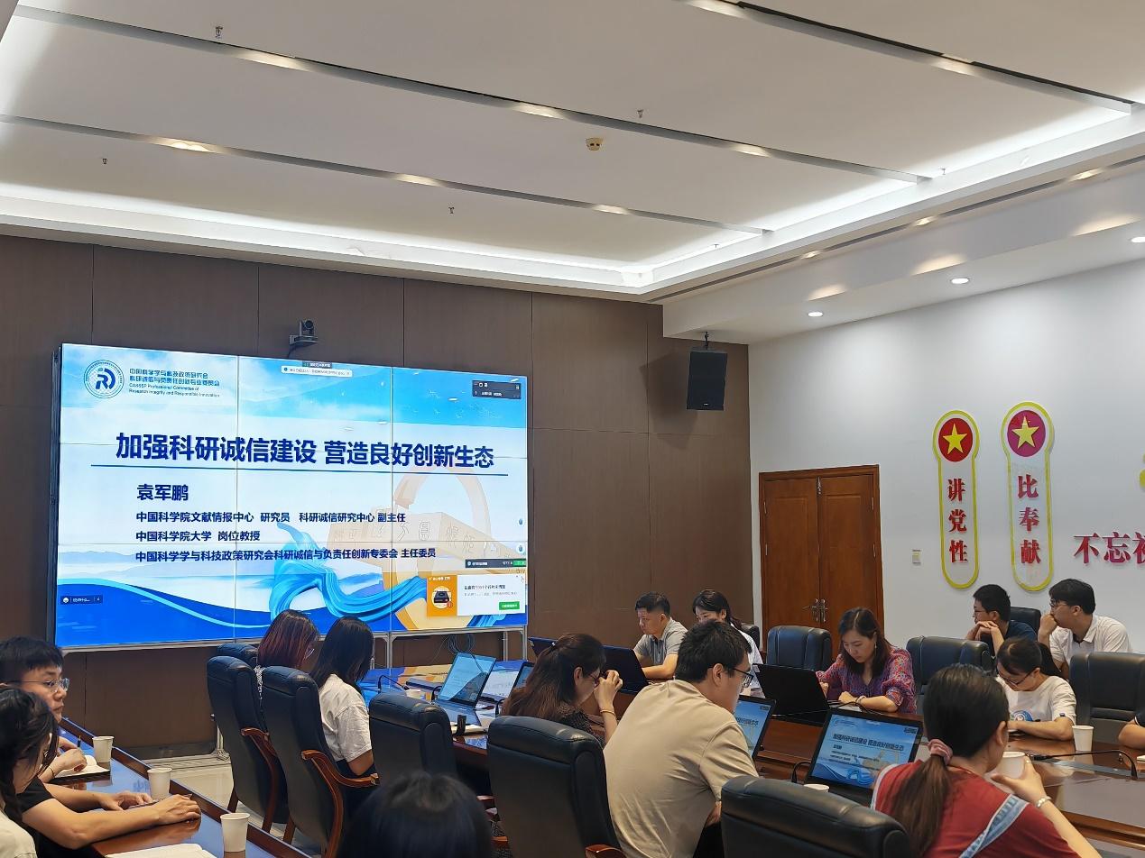 为落实党中央、国务院等部门关于加强科研诚信建设的相关文件精神,深入推进科研诚信、科研伦理和学风建设工作,营造风清气正的学术环境和严谨求实的学术风气,同时结合《广东省科学技术厅关于组织开展论文学术不端自查和挂名现象清理工作的通知》工作要求,7月4日上午,广州海洋实验室召开科研诚信与学术规范专题教育培训会(线上+线下),邀请了中国科学院文献情报中心研究员、科研诚信研究中心副主任袁军鹏现场授课。实验室科研规划部副部长刘鑫出席并主持会议,各研究团队成员、职能部门代表等60余人参加会议。