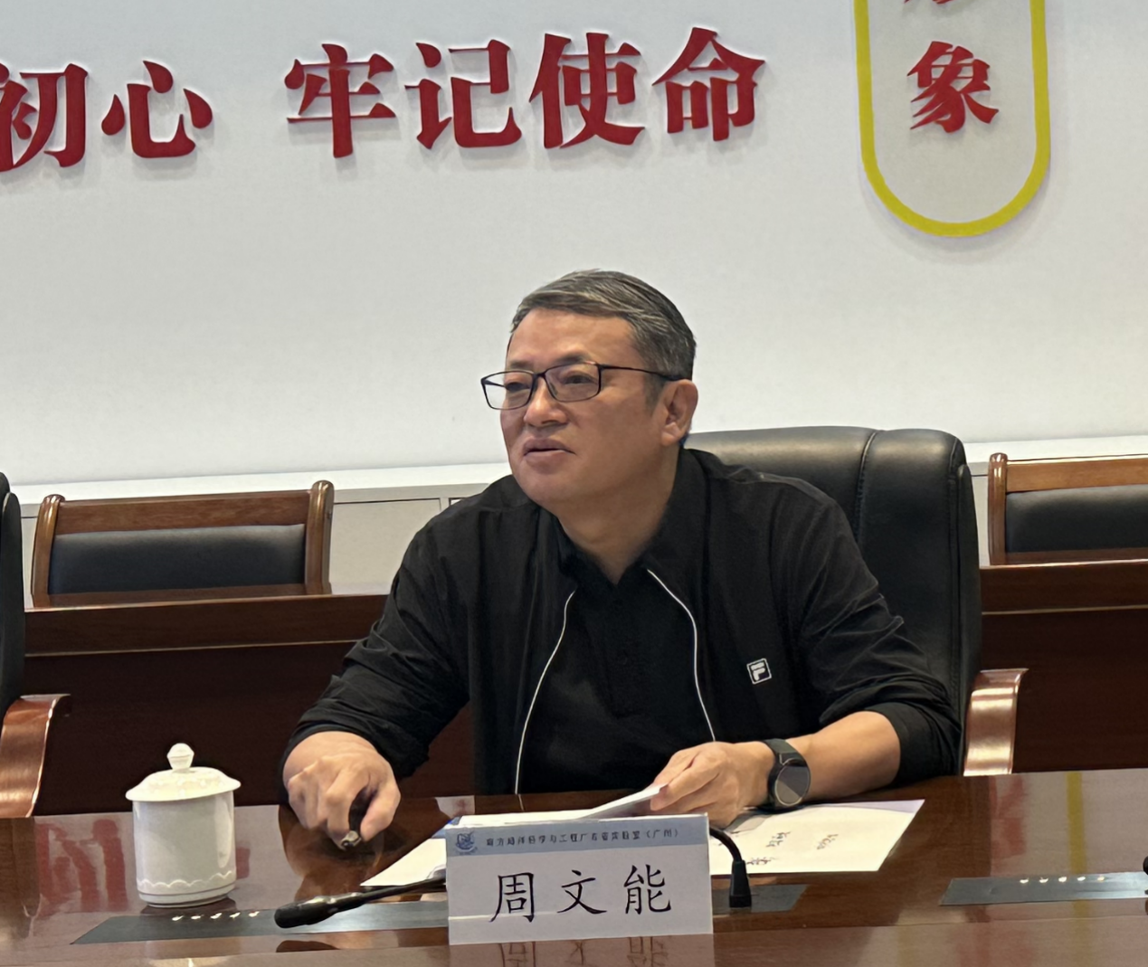 会上,李荣锦首先介绍了调研组成员和调研目的。周文能对调研组一行的到访表示热烈欢迎,就实验室整体情况做了简要介绍。