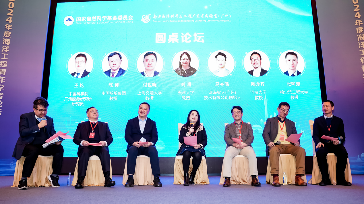 圆桌论坛环节,王屹研究员担任主持人,中国船舶集团首席专家陈刚教授、上海交通大学付世晓教授、天津大学刘润教授、深海智人(广州)技术有限公司创始人马亦鸣、河海大学陶龙宾教授、哈尔滨工程大学张阿漫教授共六位嘉宾,围绕“当代海洋工程青年科研工作者的机遇与挑战”主题,就青年科研工作者的成长路径、青年科研人才的培养体系、海洋工程领域青年人才发展机遇等议题分别展开讨论与分享。特别在引导青年人才平衡工作和生活、进行多学科交叉合作、建立“海洋科学-海洋技术-海洋工程”桥梁等方面提出了创新思路和建议。与会者对圆桌讨论的深度和广度给予了高度评价,反馈其为青年科研工作者的成长和海洋工程领域的进步提供了宝贵的思想碰撞和交流平台。