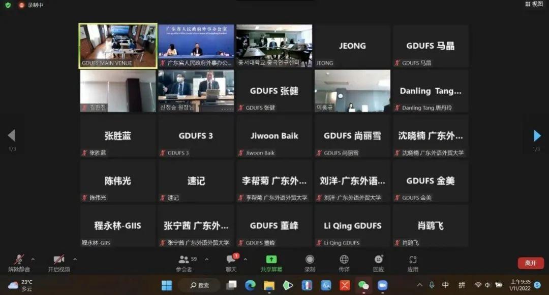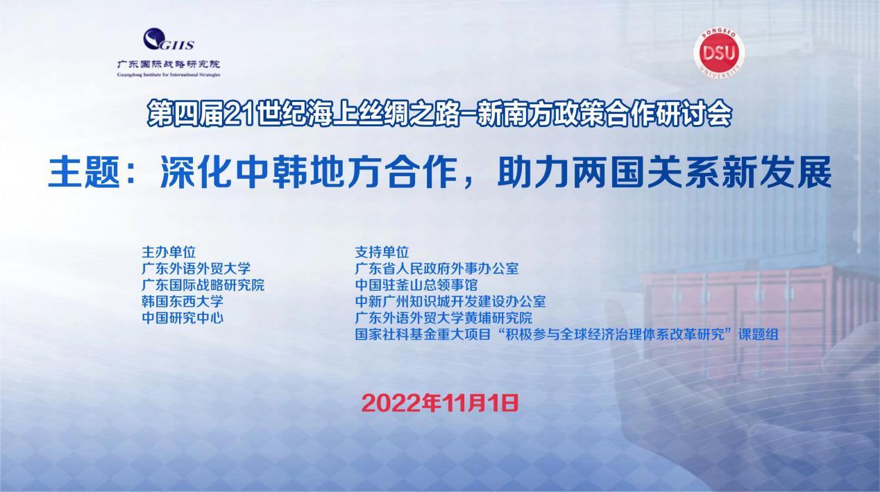 研讨会在中韩两国以线上线下的方式同时进行,得到中国驻釜山总领事馆、韩国驻广州总领事馆支持。会议主要目的是研判中国(广东)-韩国(釜山)在 21 世纪海上丝绸之路和韩国新南方政策背景下的合作与交流前景。
