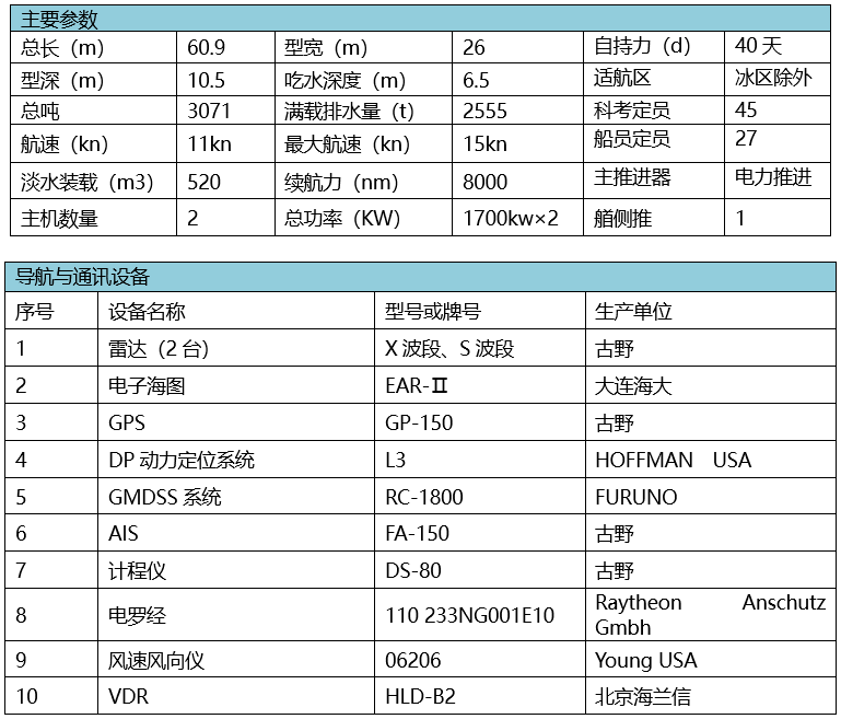 新型综合科考船“实验1”由中国科学院声学研究所、中国科学院南海海洋研究所及中国科学院沈阳自动化研究所联合建造,2009年4月完成建造并投入使用,由南海海洋研究所作为船的运行托管单位,负责“实验1”的日常管理、维护和运行。“实验1”是中国科学院下属的大科学装置,也是我国第一艘2500吨级入CCS船级的远洋小水线面双体科考船(SWATH),2012年加入“国家海洋调查船队”,成为“国家海上遥感验证工作站”。