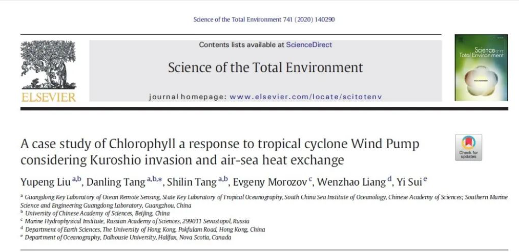 近日,广州海洋实验室唐丹玲教授研究团队关于吕宋海峡海气相互作用下叶绿素a浓度对台风“风泵”和黑潮共同作用的生态效应研究取得重要进展,该工作以“A case study of chlorophyll a response to tropical cyclone Wind Pump considering Kuroshio invasion and air-sea heat exchange”为题发表在一区Top期刊Science of the Total Environment上,唐丹玲教授为通讯作者。
