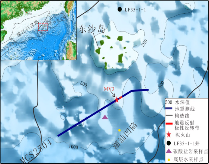 由广州海洋实验室独立承担的“广东特支计划”团队项目“南海生态环境权益综合研究”于2019年立项。项目团队的一项研究成果“东沙岛西南泥火山区的地震烃类检测”(Seismic detection for hydrocarbon in the mud volcano-rich area southwest to the Dongsha Island)为东沙群岛周围油气、可燃冰勘探开发以及重新认识火山活动强度提供了新的线索。该成果发表于《地球科学》期刊上。