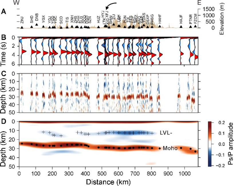 图1. 远震接收函数共转换点(CCP)叠加图像
