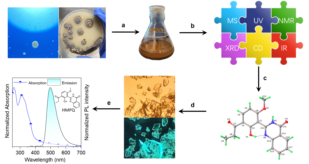 图2. 微生物来源的AIE小分子HMPQ的发现