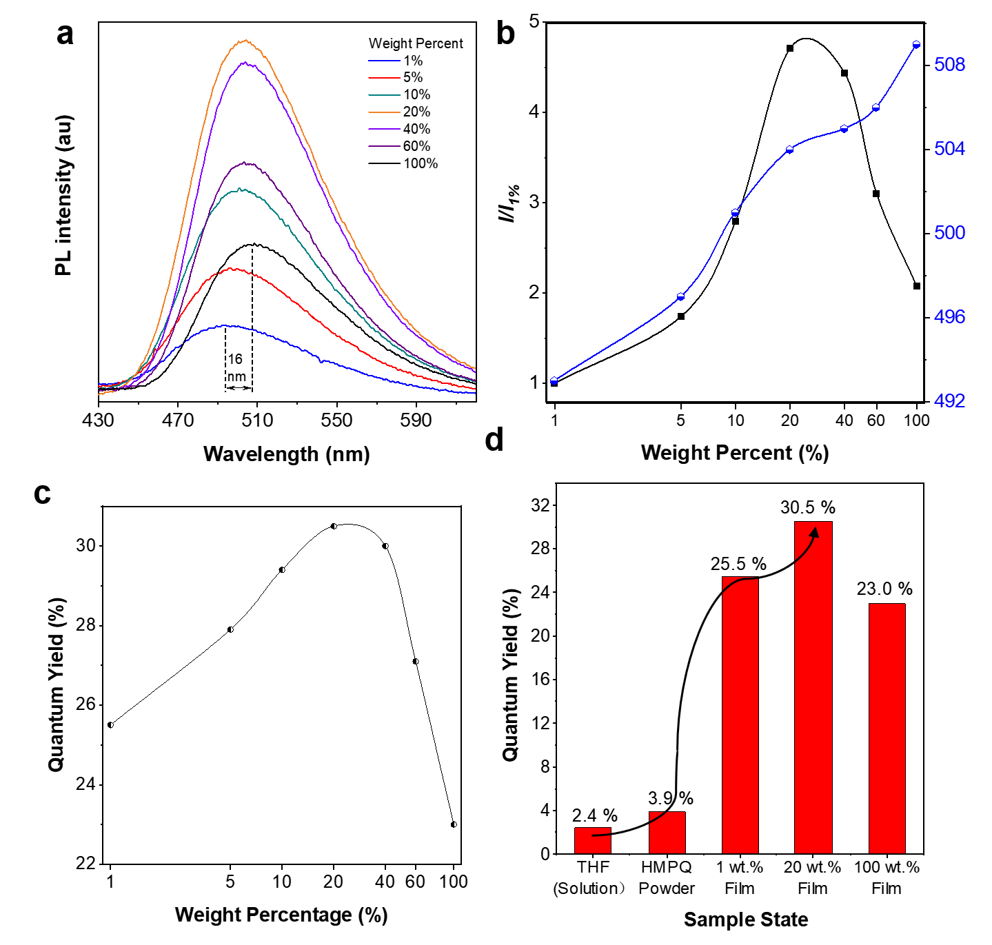 图3. HMPQ在溶液态的光物理表征